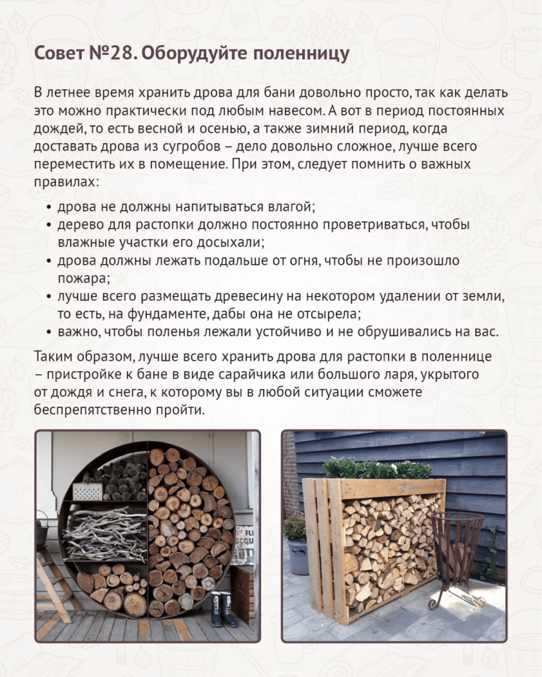 Если вы сами заготавливаете поленья для растопки, то для них необходимо сухое и защищенное место, такое как .