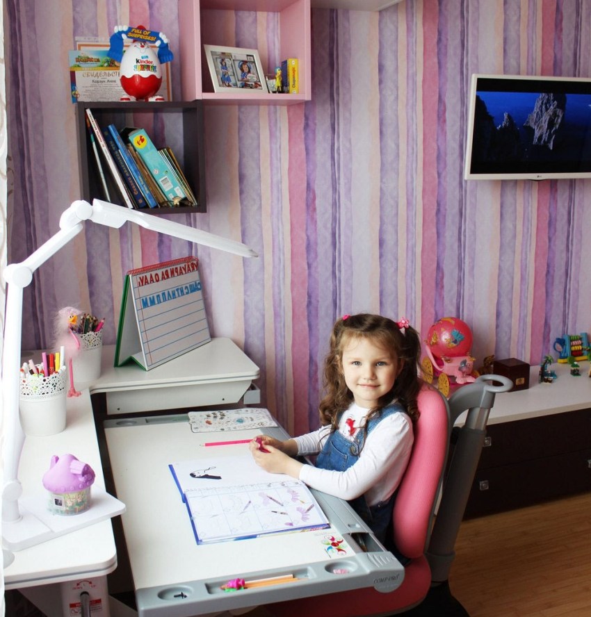 Необходимо, чтобы чрезмерно вычурный дизайн не отвлекал от выполнения уроков, а выбранный вариант давал такое освещение, которое не слепит детские глаза. Пучок света должен рассеиваться и покрывать всю поверхность стола.