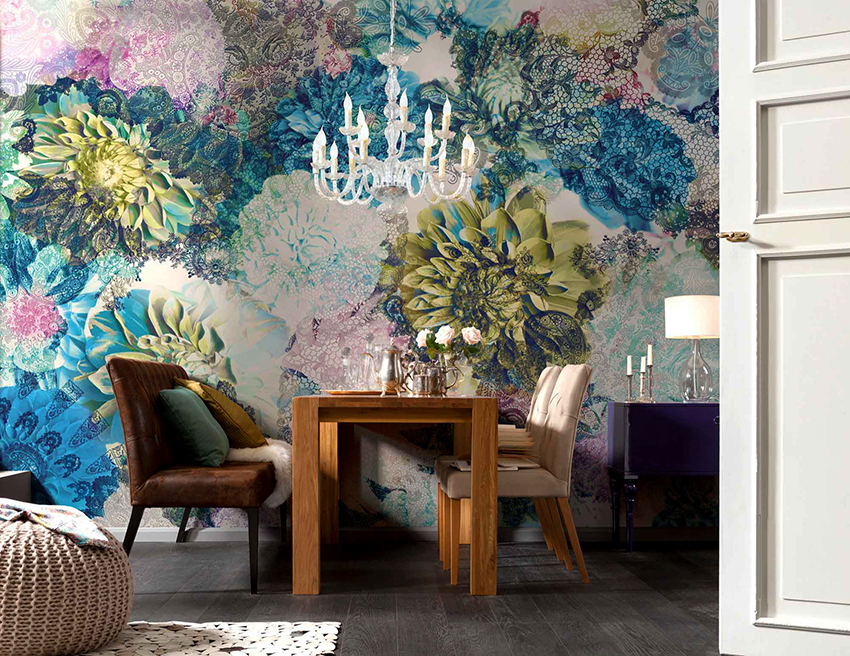 - крупногабаритный рисунок, декоративный узор должен покрывать большую площадь стены;