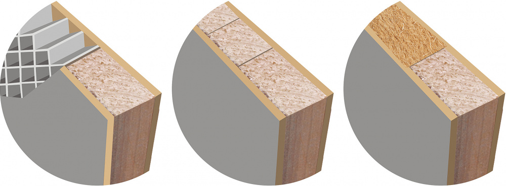 При наличии особых эксплуатационных требований к помещению, многие производители закладывают между листами обивки звукоизоляционные материалы – сотовый картон, минеральную вату или синтетические наполнители.