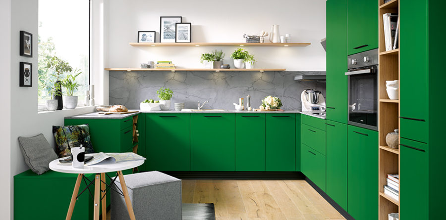 Зеленая расцветка кухонного гарнитура – благоприятно действует на внутреннее состояние, усиливает творческие способности. Как часть интерьера кухни нравится большинству людей, есть огромное количество оттенков. Минус: не со всеми стилями сочетается.