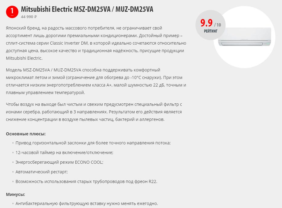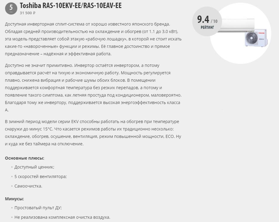 Ну и в конце приведем рейтинг наиболее популярных моделей сплит-систем по версии сайта expertcen.ru с указанием их характеристик, основных преимуществ и недостатков. Для ознакомления с информацией нажмите на вкладку с названием.