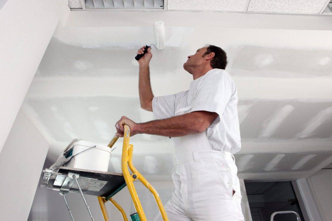 Нанесение краски на потолок из гипсокартона