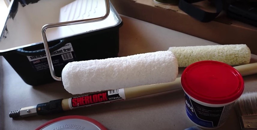 На открытых плоских участках удобно пользоваться валиком. В дополнение к валику купите подходящую емкость для наполнения краской, она позволит равномерно смачивать валик. Приобретите удлиненную рукоять к валику, она приспособлена для покраски потолка.