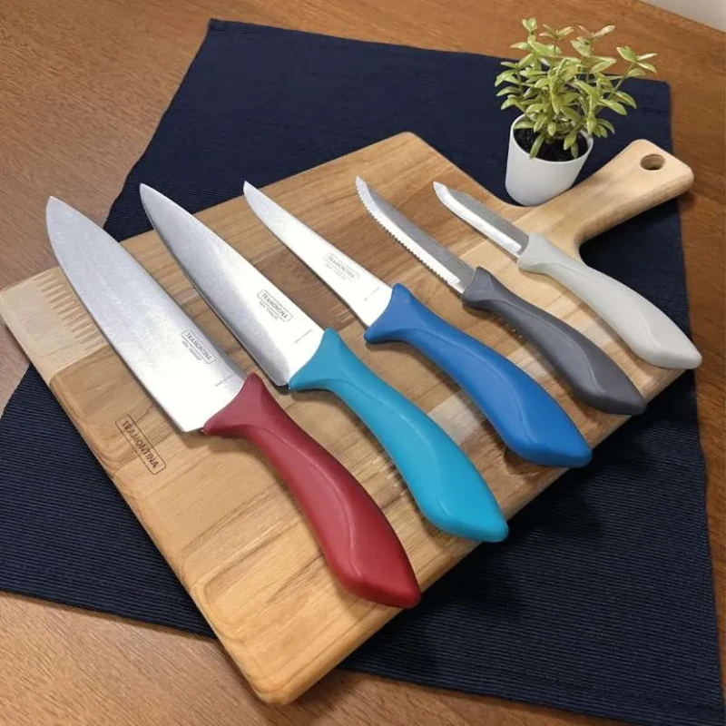 - Tramontina. Марка из Бразилии славится профессиональными и узкоспециальными кухонными ножами, но есть и немало бюджетных моделей хорошего качества.