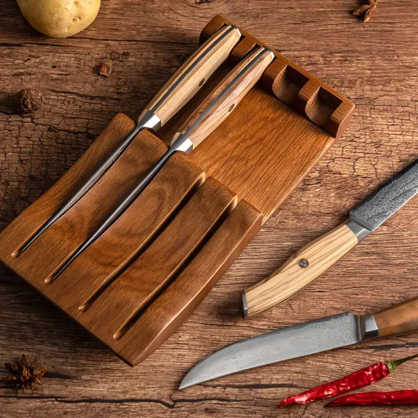 - Хранить ножи можно 3 способами, сохраняющими заточку лезвий: ножевой блок подставка, навесной магнит и тканевый чехол.