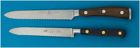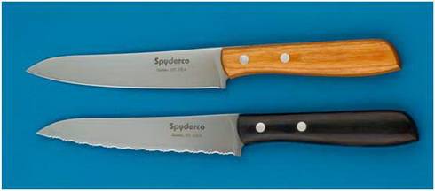 Замечательные ножи выпускает фирма «Spyderco» как в серейторном так и в обычном исполнении. Эта пара, как мне кажется, наиболее универсальна для кухни учитывая качество исполнения и хорошую сталь.