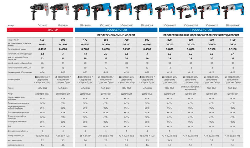 Оптимальные характеристики для бытовых и профессиональных перфораторов