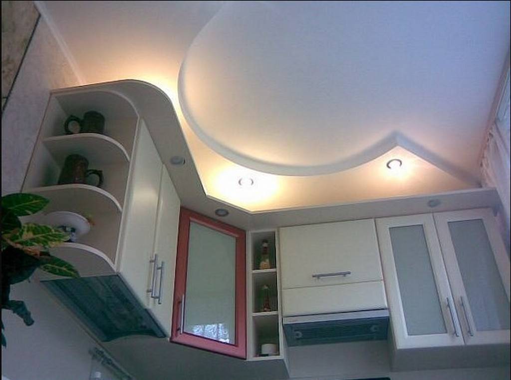Гипсокартон позволяет соорудить на потолке в кухне оригинальные, сложные конструкции