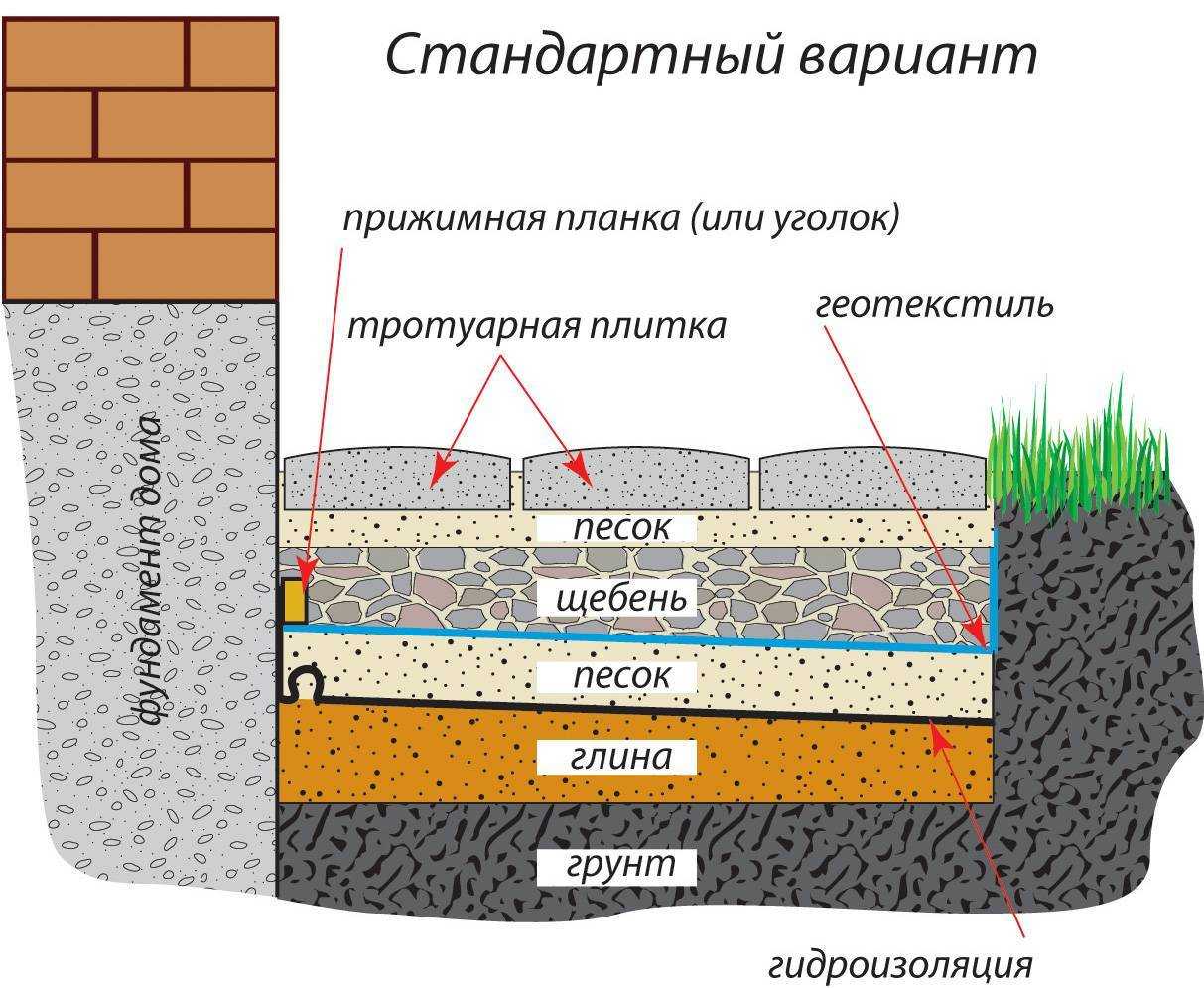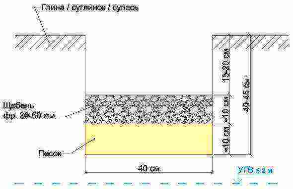 Толщина песчано-гравийной подушки обычно составляет 30 см