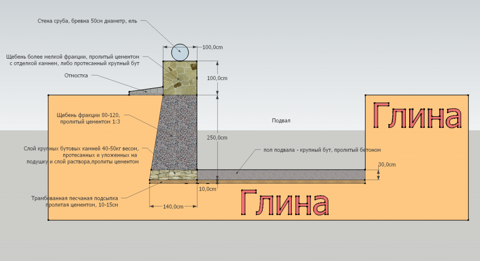 - В среднем получается пирог толщиной 65-75 см. Заглубляют его только в том случае, когда проектом предусмотрен цокольный этаж или подвал. Высота его стен и определяет уровень заложения фундамента.