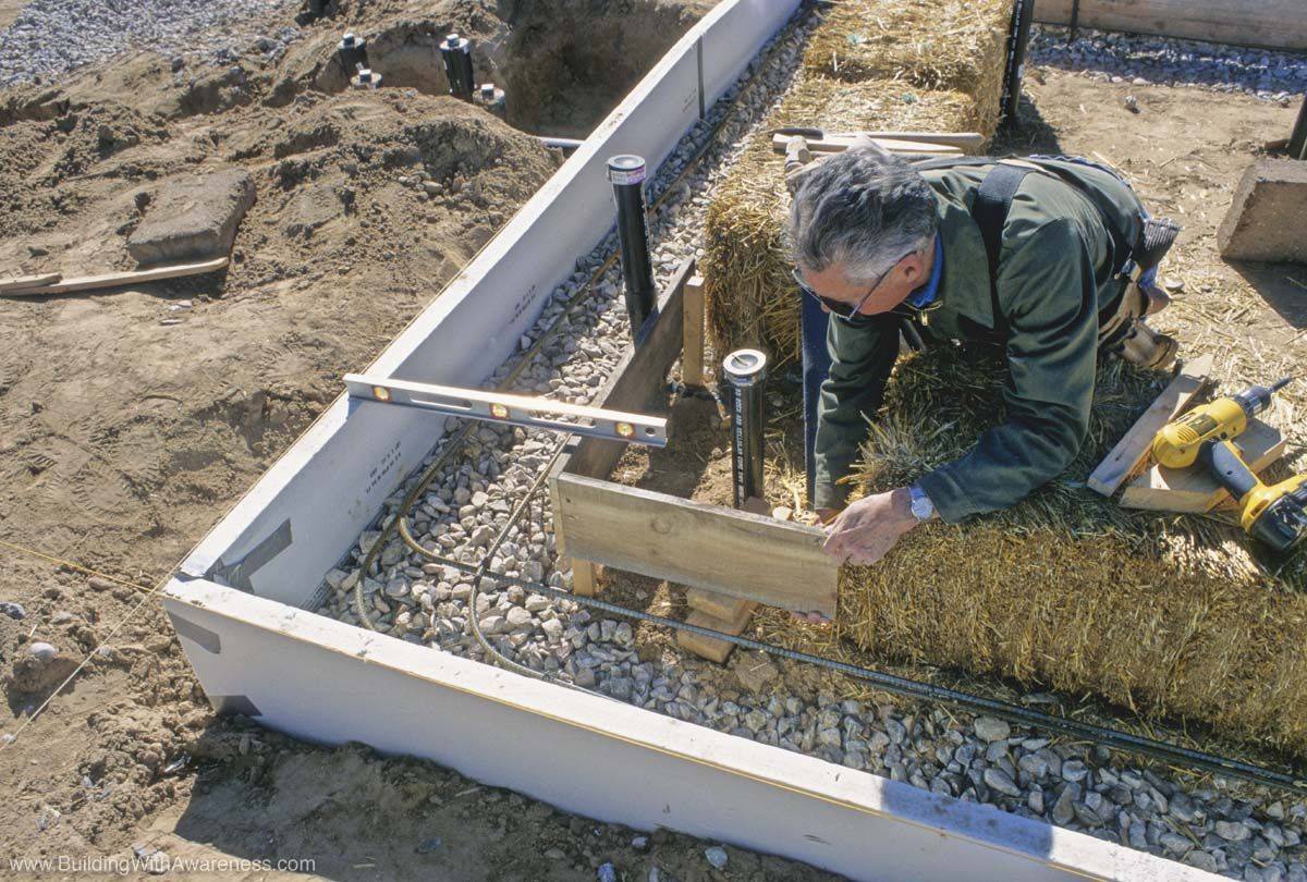 Чтобы фундамент был сооружён на щебёночной подушке без проблем, слой камней следует укладывать идеально ровно. Поэтому в земле с помощью колышек отмеряют нулевой уровень и при засыпке ямы щебнем ориентируются на него.