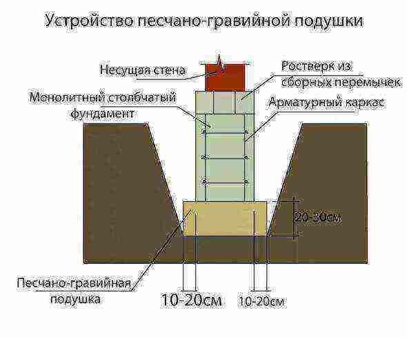 - подушка из песка устраивается под столбчатый фундамент, возводимый под одноэтажное сооружение;