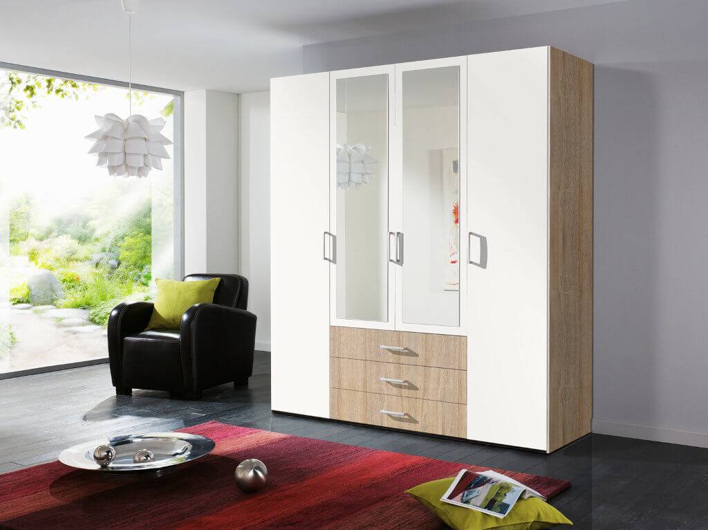 Но далеко не всегда следует придерживаться какого-то одного оттенка для всех предметов мебели в рамках одного помещения. Так, некоторые стили (в большинстве своём, современные) предусматривают использование мебели разных тонов. Поэтому белый шкаф можно смело сочетать с прозрачными пластиковыми стульями и чёрным журнальным столиком. Главное — не бояться экспериментировать и проявлять свою фантазию.