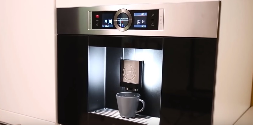 Отличительной особенностью техники встраиваемого типа является то, что управление и кнопки выполнены на внешней части панели. Кофемашина будет значительно больше настольного оборудования, так как большая часть основных рабочих инструментов размещается по боковым сторонам. При использовании встраиваемой машины загрузить воду, кофе и другие ингредиенты сверху не получится.