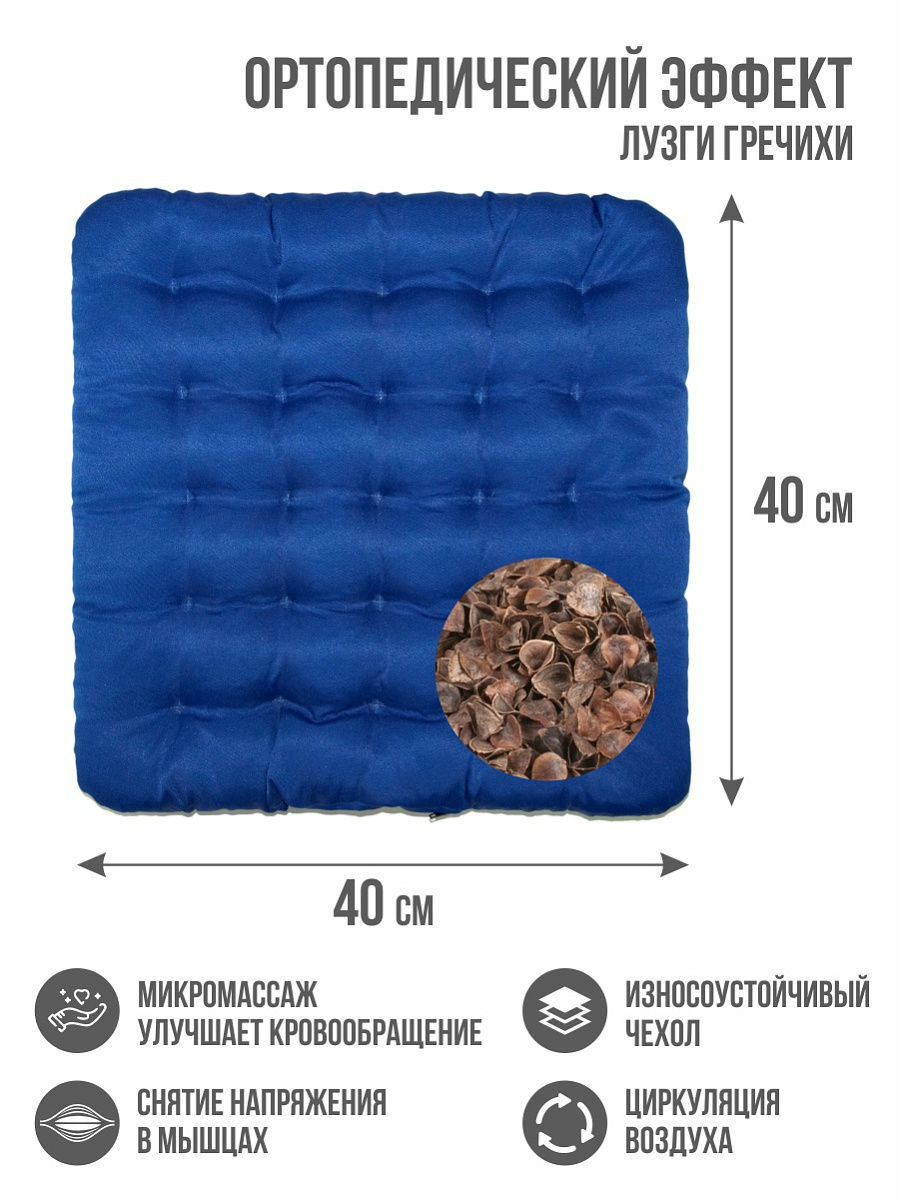 При постоянном использовании сиденья с гречневой лузгой прекращаются нарушения кровообращения в конечностях, связанные с ними отеки и варикоз, уходят геморроидальные боли, неприятные ощущения, вызванные простатитом, уменьшается нагрузка на позвоночник. Размер изделия: 45х45 см. Но весит оно полтора килограмма.