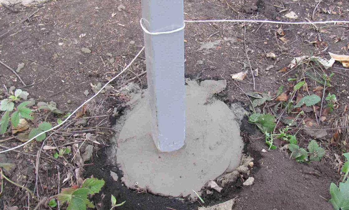 Подготовка бетонирования столбов калитки на примере металлической калитки