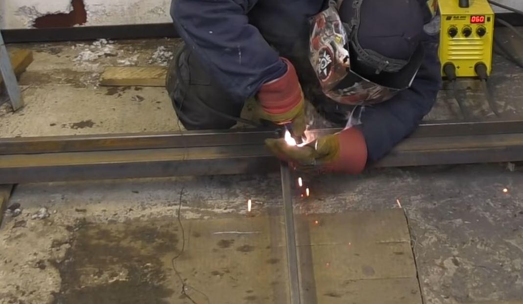 Согласно подготовленному чертежу трубы режутся болгаркой на куски, свариваются между собой. Получается наружный каркас. Если усилить внутренним каркасом, то калитка выйдет прочной. Для внутреннего каркаса берут трубу меньшего размера ‒ 20*20 мм, 20*40 мм. Метод сварки при соединении элементов ‒ прихватками, то есть шов делается не сплошной, а местами, по 2 см.