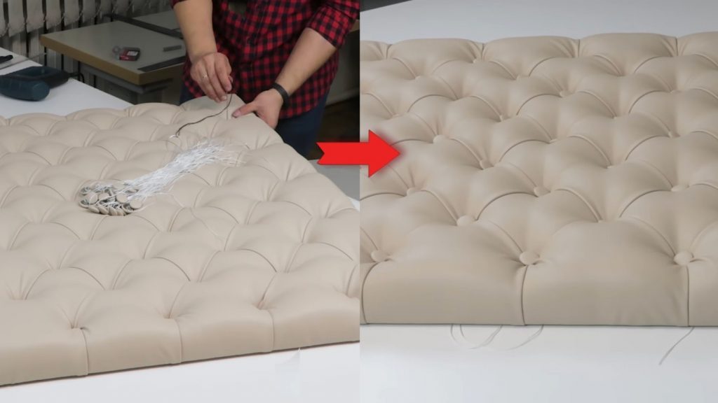 Такой обивочный материал способен порваться и привести сделанную каретную стяжку в негодность. Особое значение имеет даже толщина эластичной подкладки, ведь геометрия рисунка на ткани получится более рельефной и роскошной, если эластичная подкладка будет плотной.