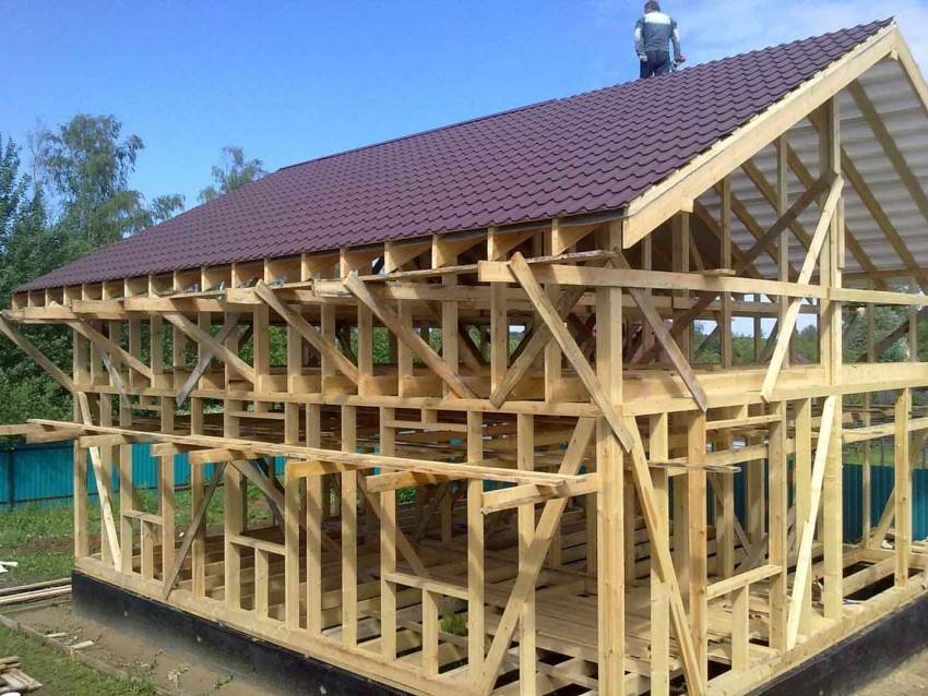 Конкретные действия сборщиков зависят от степени подготовленности к монтажу – древесина уже размечена, порезана на детали (стойки, балки, подкосы) или все придется делать «с нуля». В первом случае время на возведение здания значительно сокращается.