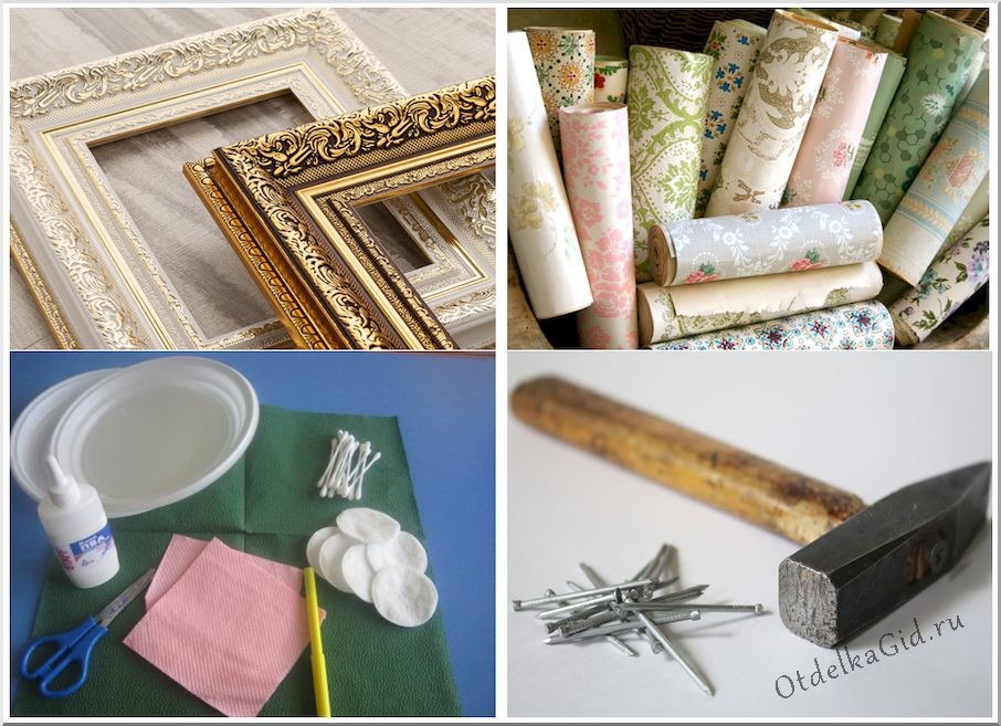- Если требуется, то рекомендуется обзавестись подходящим инструментом. Для навешивания на стену могут понадобиться гвозди и молоток, а если рамка изготавливается самостоятельно – веревка и саморезы.