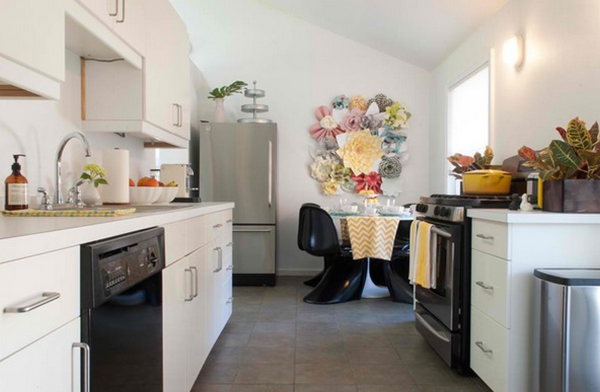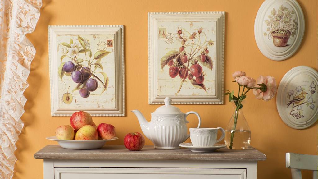 Если в качестве декора вы выбрали хенд мейд атрибутику, не забывайте о практичности. Панно, самодельные рамочки или любые другие инсталляции лучше поместить в обеденной зоне. Тогда ваши творения не будут подвергаться интенсивным загрязнениям, как если бы они были расположены вблизи от плиты, например.