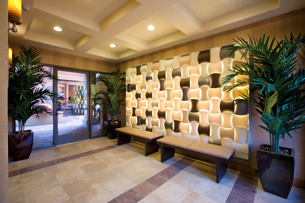 Световые панно могут быть более сложной конструкции, в таком случае устанавливаются отдельные панели с закрепленными на них светодиодами. Подобный вариант может выглядеть как полноценный стеновой светильник – яркости для этого вполне достаточно.