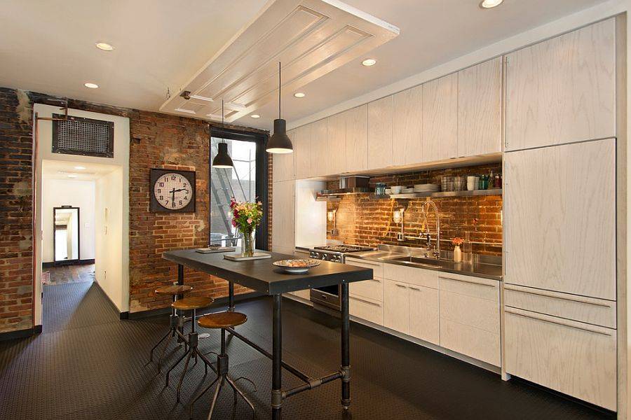 Кирпичная кладка в дизайне кухни