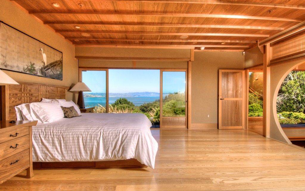 Роскошная спальня в японском стиле с минимумом мебели