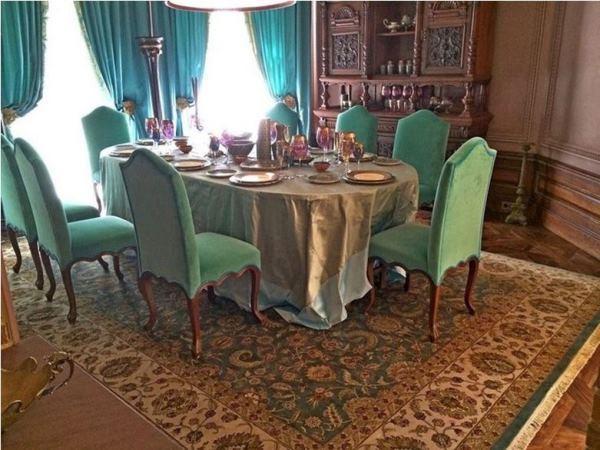 Отлично впишутся бархатное кресло и такие же портьеры, люстры из хрусталя, торшер с абажуром и вазы со шкатулками.