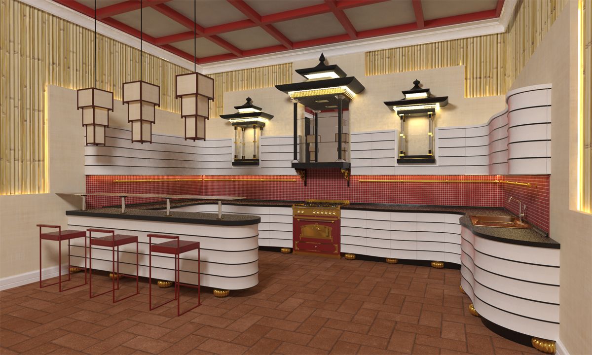 Отделка кухни в Китайском стиле