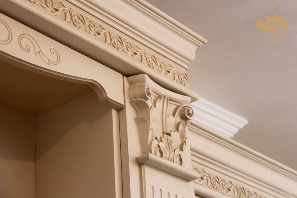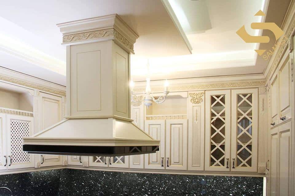Стены кухни в классическом стиле изысканно украсит лепнина