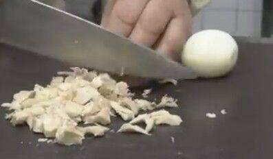 Лук придает некую пикантность блюду, поэтому важно, чтобы он был нарезан мелко и чувствовался в блюде ненавязчиво