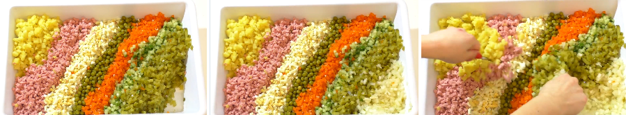 Последовательность слоев в выкладке не имеет никакого значения, потому как все ингредиенты перемешиваются и щедро сдабриваются майонезом. Это лишь моя придумка, дабы получить максимум удовольствия от процесса приготовления