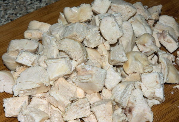9. Готовую курочку нарезаем на небольшие кусочки.
