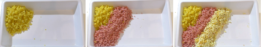 12. Достаем желе от косточек. Разрезаем его небольшими кубиками. Выкладываем кубики в чашечки белков.