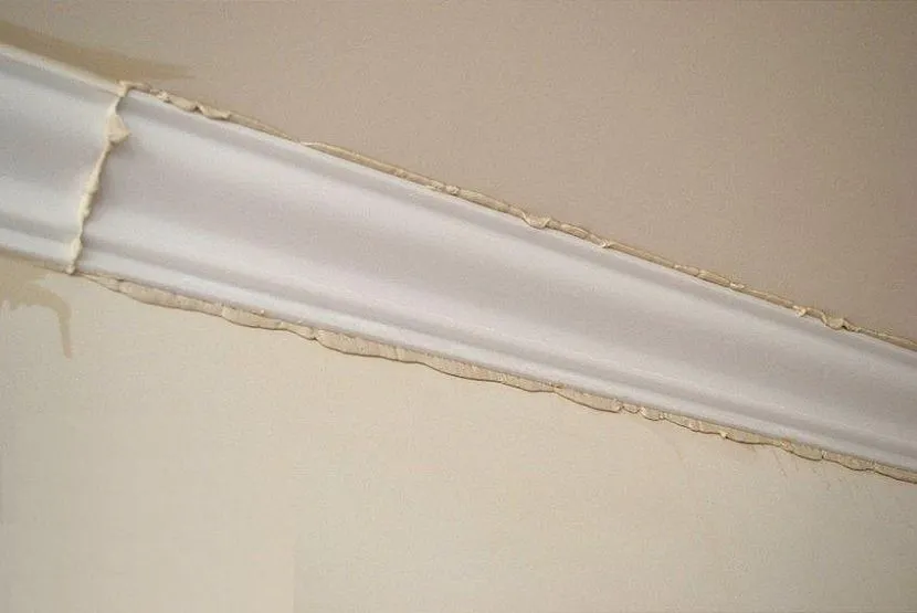 Для приклеивания потолочного плинтуса стоит использовать жидкие гвозди или шпаклевку, сделанную на основе акрила.