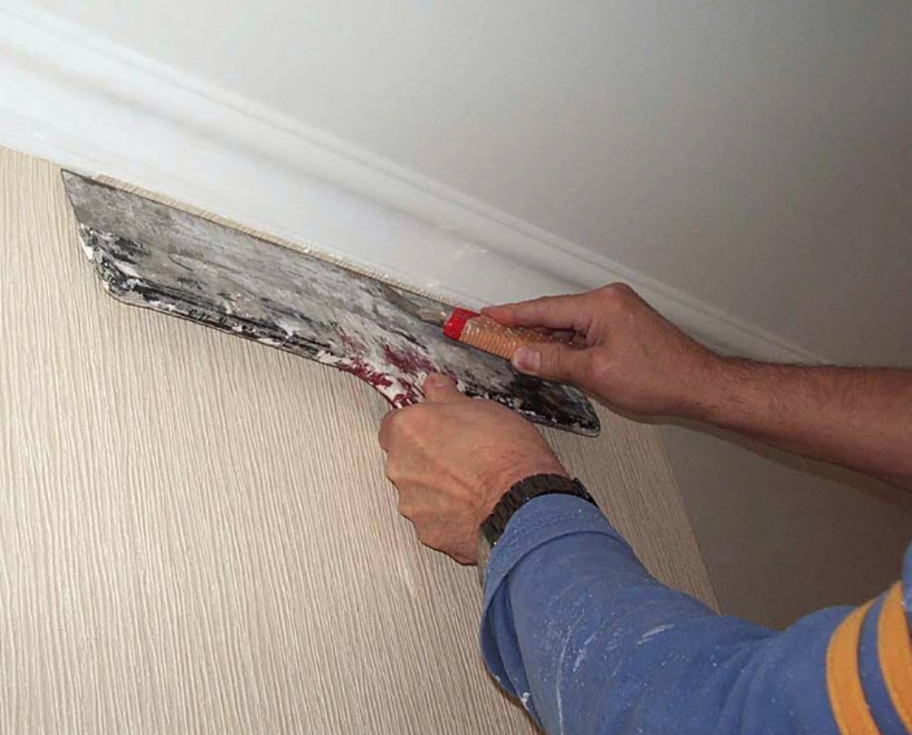 Монтаж потолочных багетов, замазывание швов между элементами – робота несложная