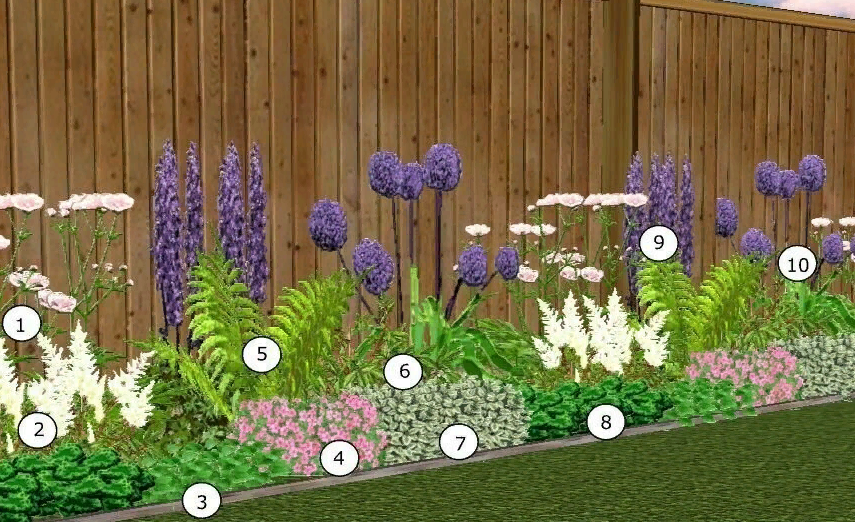 Многоуровневые клумбы (с высокорослыми экспонатами на заднем плане и низкорослыми на переднем) принято размещать у стен дома, забора или живой изгороди. Тогда как в центре участка постоянно цветущая клумба из многолетников может как образовывать всевозможные комбинации из растений, так и быть оформленной только с помощью одного вида.