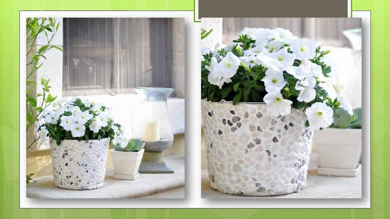 Красивые и простые контейнеры для цветов можно сделать из цемента. Берем любую емкость — тазик, ведро, горшок. Дно укрываем кусочком армирующей строительной сетки, это будет будущее отверстие нашего горшка. Всю остальную поверхность закрываем пищевой пленкой — она мягкая и плотно облегает поверхность. Покрываем обычным цементным раствором, сверху слой сетки и еще слой раствора. Декорируем галькой, щебенкой, кусочками плитки и т.д. Когда раствор застыл, вынимаем нашу форму и получаем готовой горшок любой формы и размера.
