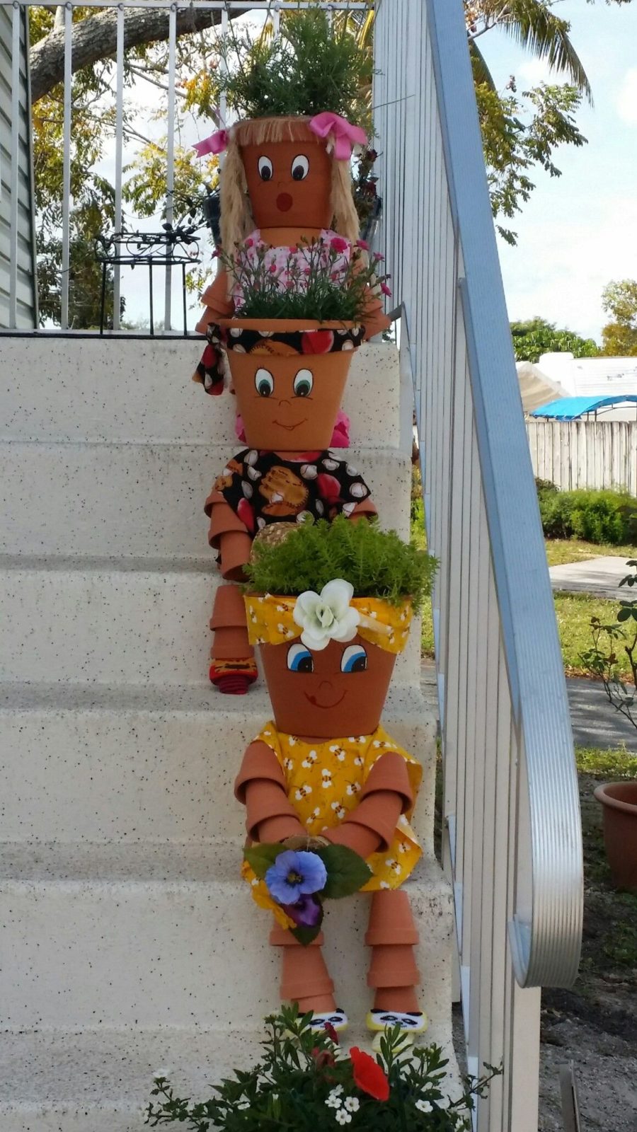 А заядлые дачники и садовники давно научились «оживлять» старые цветочные горшки, рисуя на них веселые мордочки и собирая в человечков, которых усаживают на лавки или прислоняют к дому.