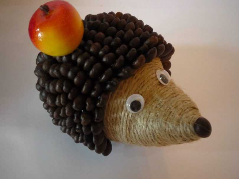 Если вы занимаетесь творчеством с детьми, можно обойтись без горячего клея, которым есть риск обжечься. Просто слепите из пластилина фигурку медвежонка, ежика, рыбки и прикрепите к ней кофейные зернышки. Такое занятие не покажется ребенку утомительным, при этом разовьет мелкую моторику, пространственное и творческое мышление.