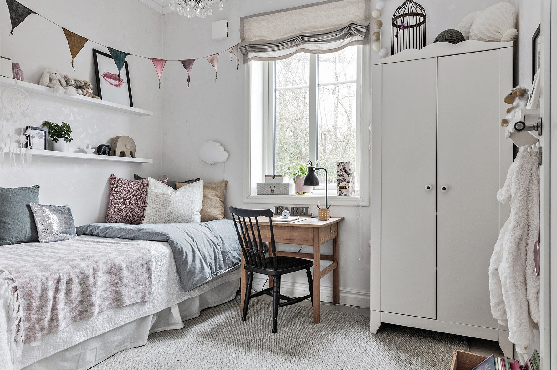 Скандинавский стиль, который сегодня находится на гребне популярности, часто выбирают для дизайна подростковых спален. При этом для оформления помещения предпочтение чаще всего отдается белому цвету. Это решение вполне оправданно, поскольку такая колористика «работает» на расширение пространства и комната выглядит просторней и светлее. Главное – подобрать теплый оттенок белого цвета, и тогда интерьер будет выглядеть не только светлым, но и уютным.
