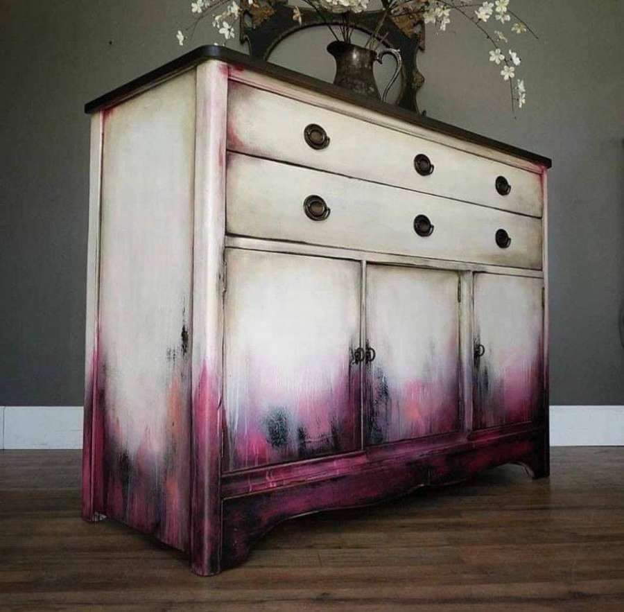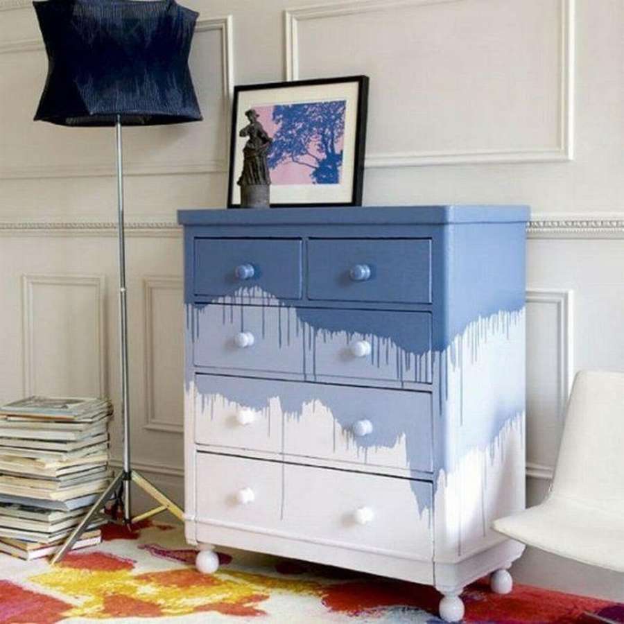 Также вы можете попробовать интересные эффекты, используя различные техники, например, мраморирование или градиент. Более того, взгляните, как красиво выглядят подтеки краски на комоде.