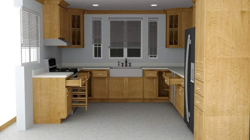 Pro100. Популярный вариант для пользователей среднего и продвинутого уровня. С помощью Pro100 создаются кухни с использованием модулей или мебели по собственному проекту; при этом на модели можно накладывать фактуру и реалистично визуализировать. Минус: без оплаты доступна только ограниченная демоверсия.