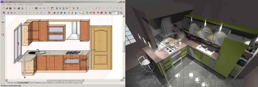 Для наиболее грамотного расположения всех элементов в кухонном пространстве и создания трехмерной картинки, которая даст представление о том, как новая кухня будет выглядеть в реальности, существуют компьютерные программы, созданные для облегчения работы не только дизайнера, но и просто хозяев, решивших сделать капитальный ремонт.