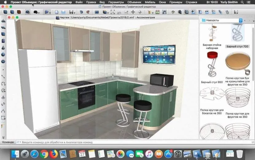 Этот русскоязычный софт позволяет сделать поверхностное проектирование с минимумом настроек и без прорисовки деталей и фактур. Как подобрать барный стол для кухни читайте тут.