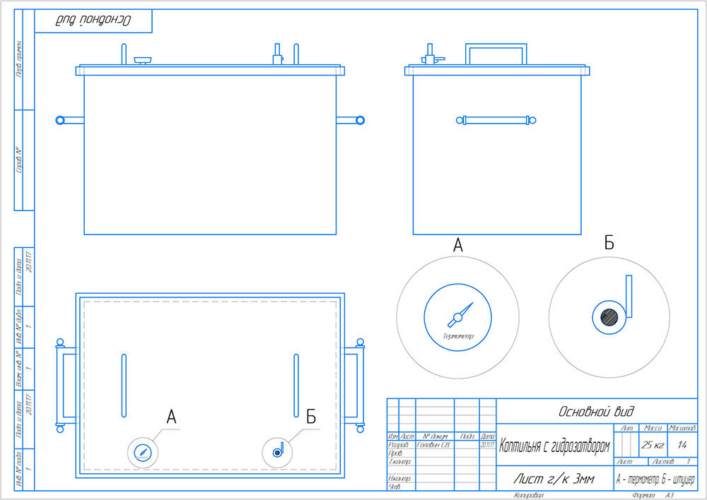 Схемы, чертежи и размеры коптилен холодного, горячего копчения из дерева