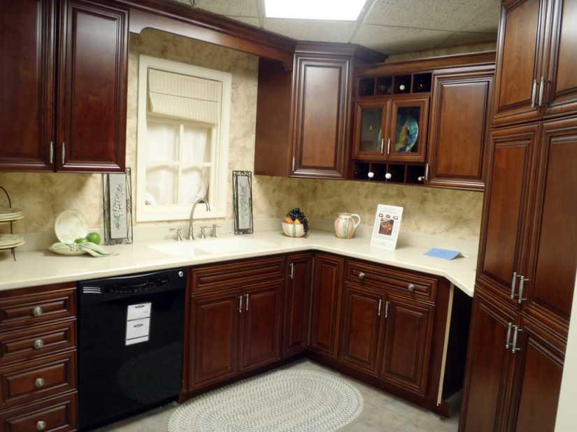 Более насыщенный и темный коричневый оттенок подходит для оформления нижней части мебельного гарнитура. Тогда верх пусть будет светлым. Этот прием визуально удлинит стены, сделает помещение больше и воздушнее.