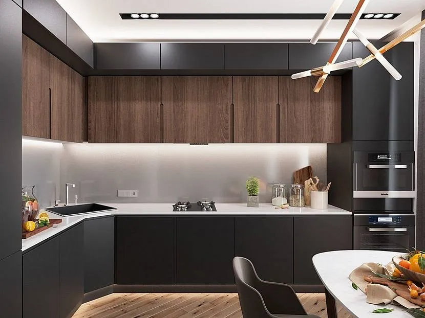 Интерьер кухни не будет казаться мрачным и отталкивающим, если вы правильно подберете цвета-компаньоны, отделочные материалы и аксессуары. Ниже расскажем о конкретных приемах, которые помогут сделать дизайн гармоничным.